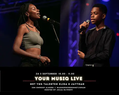 A.s. zaterdag 3 september is het zover, Your Musiqskool trapt het seizoen af met de de eerste Your Musiq Live editie van het nieuwe lesjaar i.s.m. met Omroep Almere en programma Wakker Worden.
